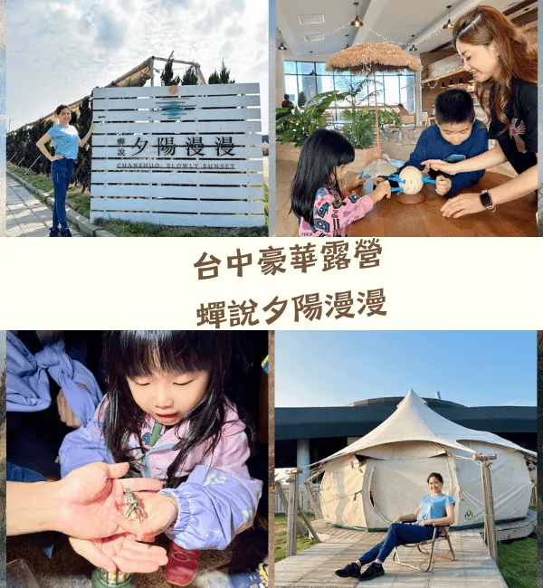 想要一個不一樣的親子露營體驗嗎?那就來台中的【蟬說夕陽漫漫】吧!這裡可不是一般的露營地,而是中台灣最美的夕陽和高美濕地的完美結合,讓你在豪華帳篷裡,享受大自然的美好,還能跟家人一起愜意消磨時間!