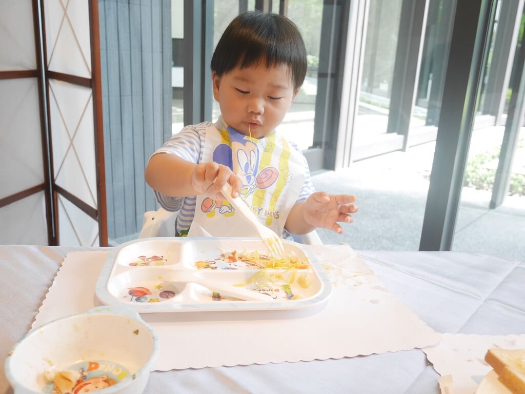 我們隔天早上8:00就到一樓用餐,寬敞的宴會廳,讓我們推嬰兒車進去也不會卡住,我們到達的時候已經有很多人在裡面用餐了,白金花園酒店的早餐非常的豐盛。