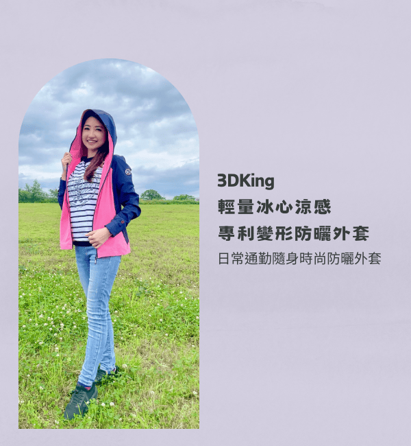為了讓晚上好哄睡,除非下雨小孩下課馬上就會帶往公園放電,現在天氣炎熱又即將迎來暑假,每天全身全臉塗防曬還是把我曬得黑乎乎,即使不在意黑也很怕老化,拿傘陪小孩玩非常不方便,物理性防曬外套是最直接有效的防禦方式,不過大熱天要穿長袖外套,我使用找不到心目中最佳好物,直到遇見3DKing輕量冰心涼感專利變形防曬外套,才發現原來時尚涼感和防曬,三個願望竟然可以同時達成。