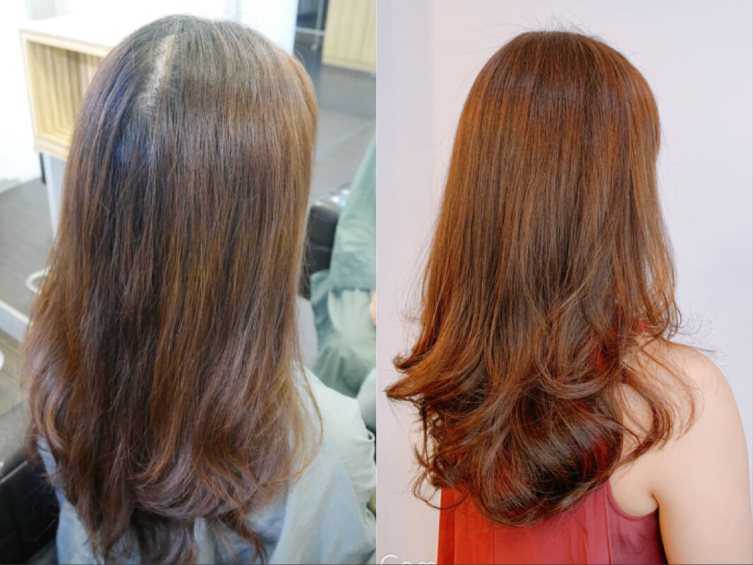 二話不說預約Ivan設計師,先給大家看一下後面頭髮染護後的對照圖,不論是顏色和光澤度都有明顯改變,髮線也整理到看不見了。