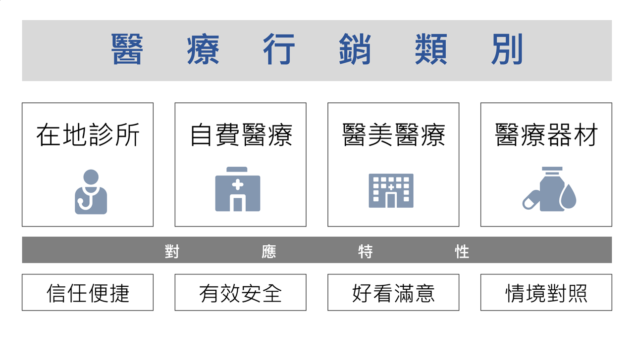其中,更重要的是,從用戶的角度出發,依據不同類型:地方診所、自費醫療、醫美醫療、醫療器材等各類型的使用者,掌握各自在意的痛點,撰寫相應的文案,喚起用戶的潛在需求。