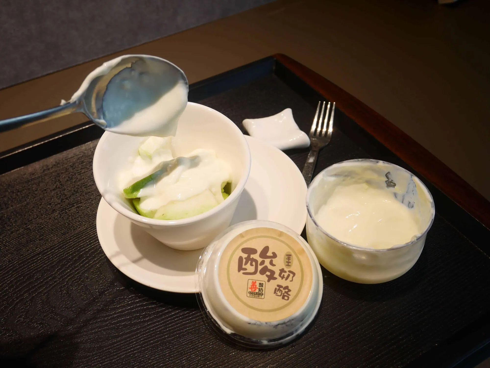 酸奶就是優酪乳在大陸的說法,因為老闆是台商在大陸已經有多家連鎖店,因此品牌名稱直接沿用,使用台灣在地食材將鮮奶經過獨家技術殺菌,完全不加一滴水定溫發酵、冷卻低溫保存, 每天限量製作製程需要24小時以上,因為純鮮奶製作的濃奶酪做法酸奶酪價格比一般市售的優酪乳還要高一點,酸奶酪口味專一簡單且香濃好吃。