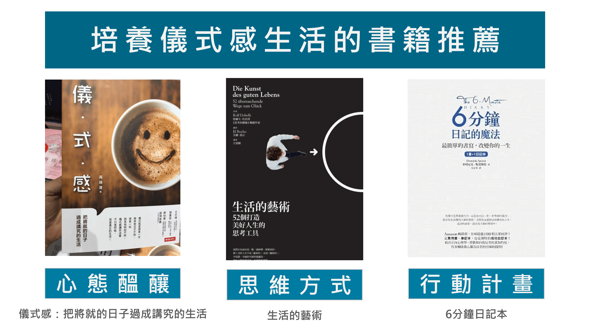 最後介紹3本儀式感相關的書籍,幫助你在日常的生活中,建立起一套屬於你的儀式感行動。