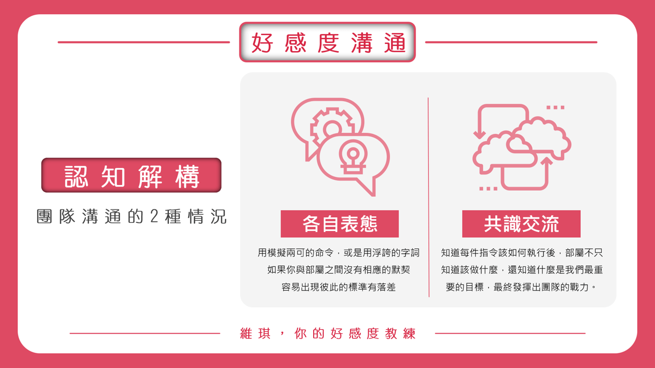 對於新任主管,部屬們與你之間還有些磨合的時期,這時候如何運用「好感度溝通法」幫助你在每次傳達訊息時,增加彼此合作上的信任感,從而產生對你的好感度就顯得格外重要。