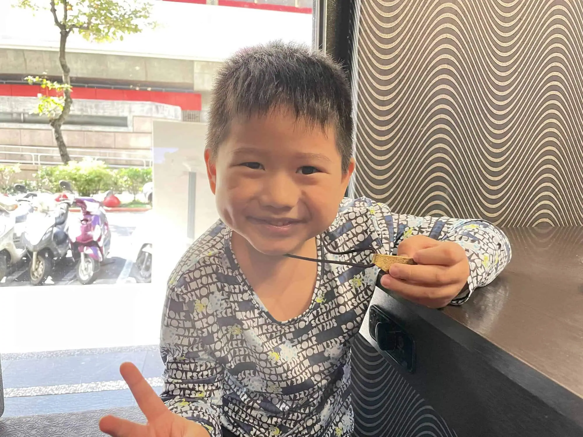 最後我再用工具親自為男孩們簽上名字,吳宗栩先生再幫忙裝上繩練,有趣、好看、大方的項鍊就完成了;其實很多人來這邊DIY還會選金圓滿來做,可惜我們有小孩在身旁,沒法待這麼久,不然每天早起敲一下金圓滿感受金銀財寶和福氣圓滿都滾滾而來的感覺一定很棒。