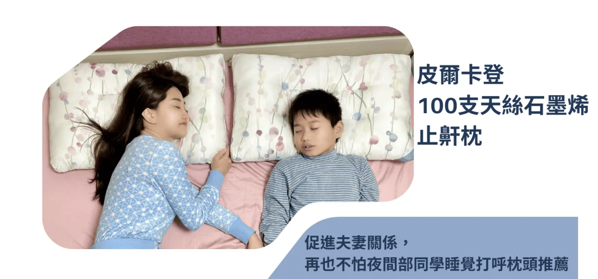 只要晚上睡得好,白天工作、情緒和精神都有幫助,在實際使用之後對皮爾卡登質感寢具更加信任,從止鼾枕頭功能細節設計到位,天絲石墨烯材質大人、小孩和長輩都非常喜愛,讓我們全家都能享受好眠。