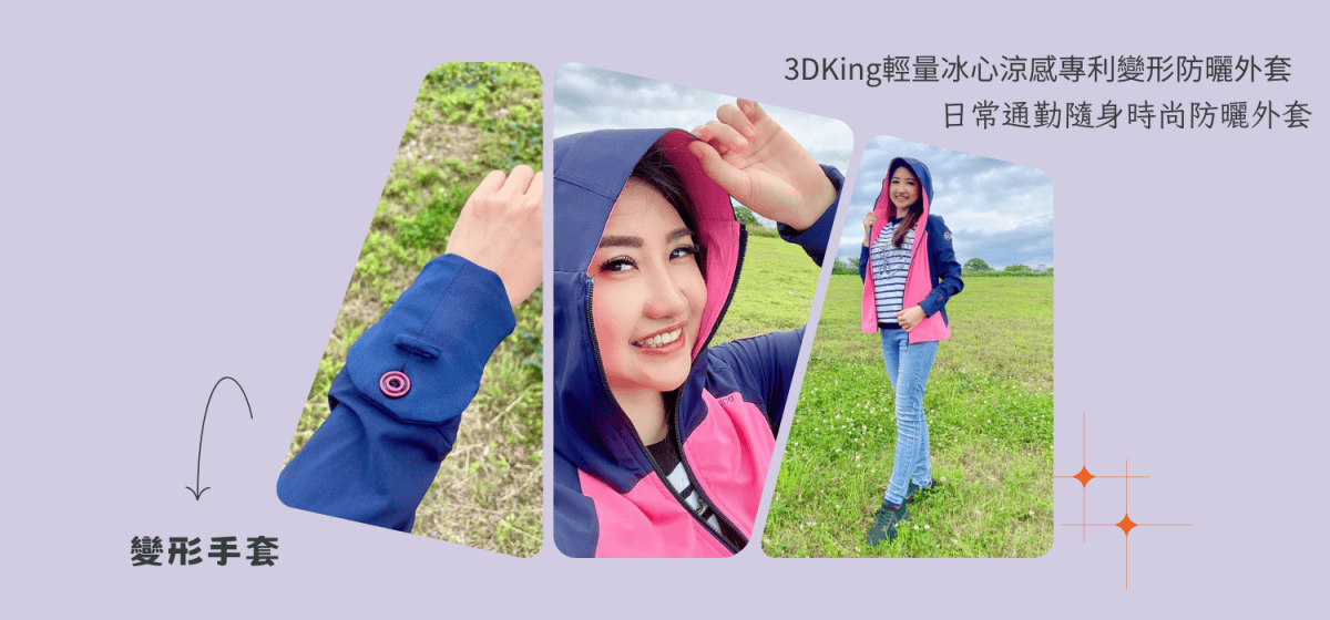 直到遇見3DKing輕量冰心涼感專利變形防曬外套,才發現原來時尚涼感和防曬,三個願望竟然可以同時達成。