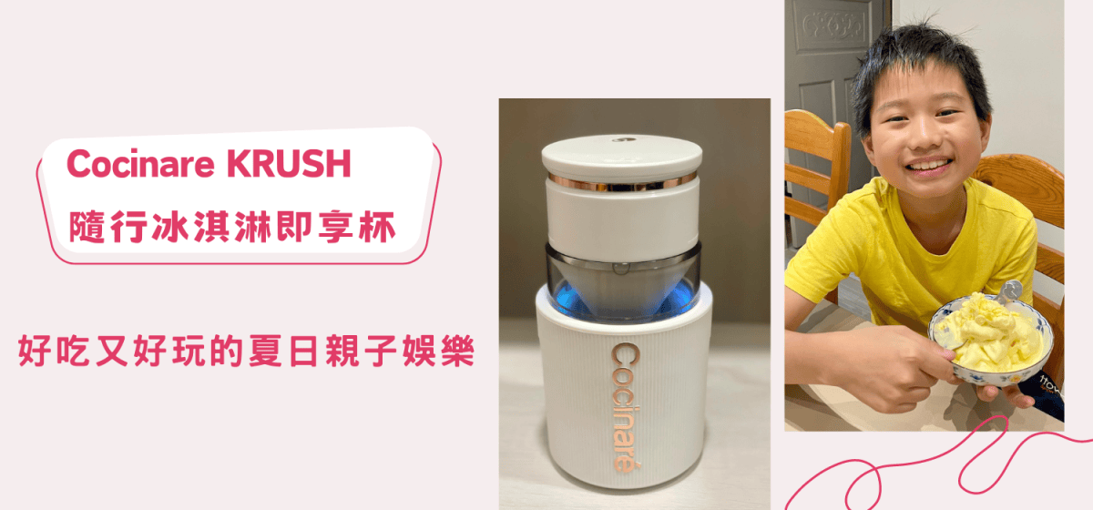 之前入手裡外生活的三合一除濕機使用已經超過3個月,不但外型美觀而且非常好用,全家對它評價都很高,這次看到裡外生活新商品Cocinare KRUSH 隨行冰淇淋即享杯,又正值暑假小孩需要消磨時間,立刻入手來玩玩: Cocinare KRUSH隨行冰淇淋即享杯內容物攪拌棒、主機、製冷杯、外杯、外出攜帶蓋、保護收納包、輕便小提袋、說明書和充電線,整體來說體積小又考慮到攜帶的情境,而且從主機到收納袋都非常好看有型,超喜歡!