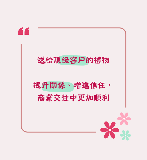 跟客戶建立良好關係可說是商業成功的關鍵之一。而送禮,不僅是一種表達感謝的方式,更是促進合作、增進信任的好方法。送禮給頂級客戶一直都是相當難的議題,因為他們通常什麼都不缺,禮物太便宜可能會讓他們看不上,禮物太貴重,貴客們也不見得願意收,選擇送給頂級客戶的禮物,讓您的心意更貼近他們的需求呢?